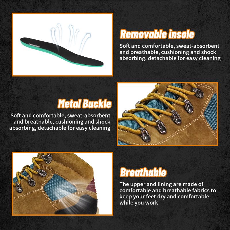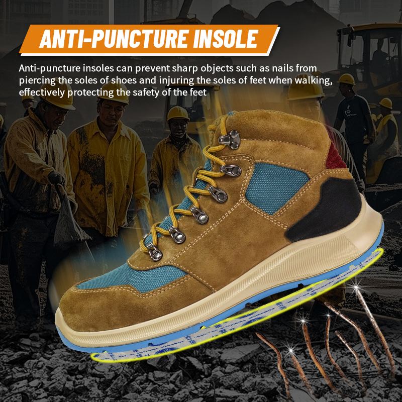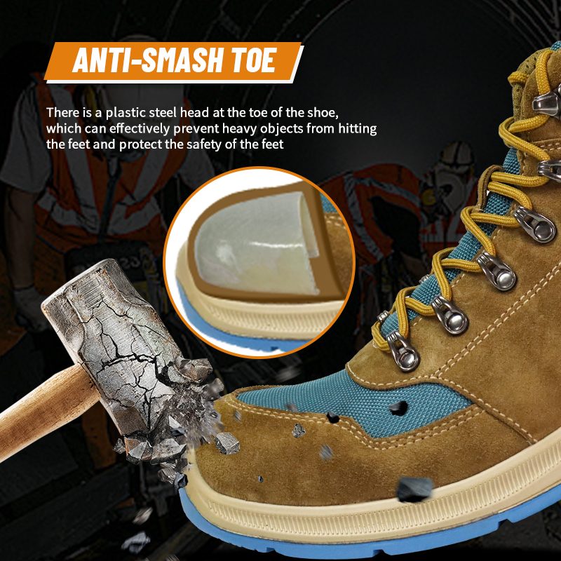 Na špičke topánky je plastová oceľová hlava, ktorá môže účinne zabrániť nárazu ťažkých predmetov na nohy a chrániť bezpečnosť nôh.