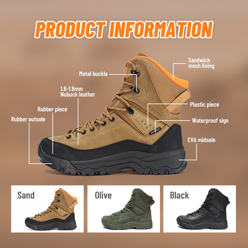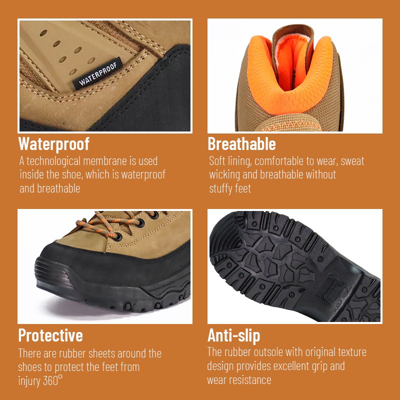 Tieto protišmykové vodotesné turistické topánky s pevnou priľnavosťou sú k dispozícii na prispôsobenie farieb, materiálov a detailov s MOQ 800 párov, ideálne pre spoluprácu so značkou a skupinové obstarávanie. A tieto trekingové topánky majú nasledujúce výhody:
