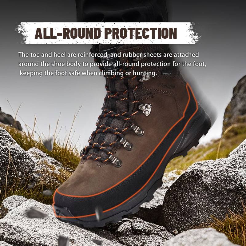 Špička a päta sú vystužené a okolo tela topánky sú pripevnené gumené vrstvy, ktoré poskytujú všestrannú ochranu chodidla a udržiavajú chodidlo v bezpečí pri lezení alebo love.